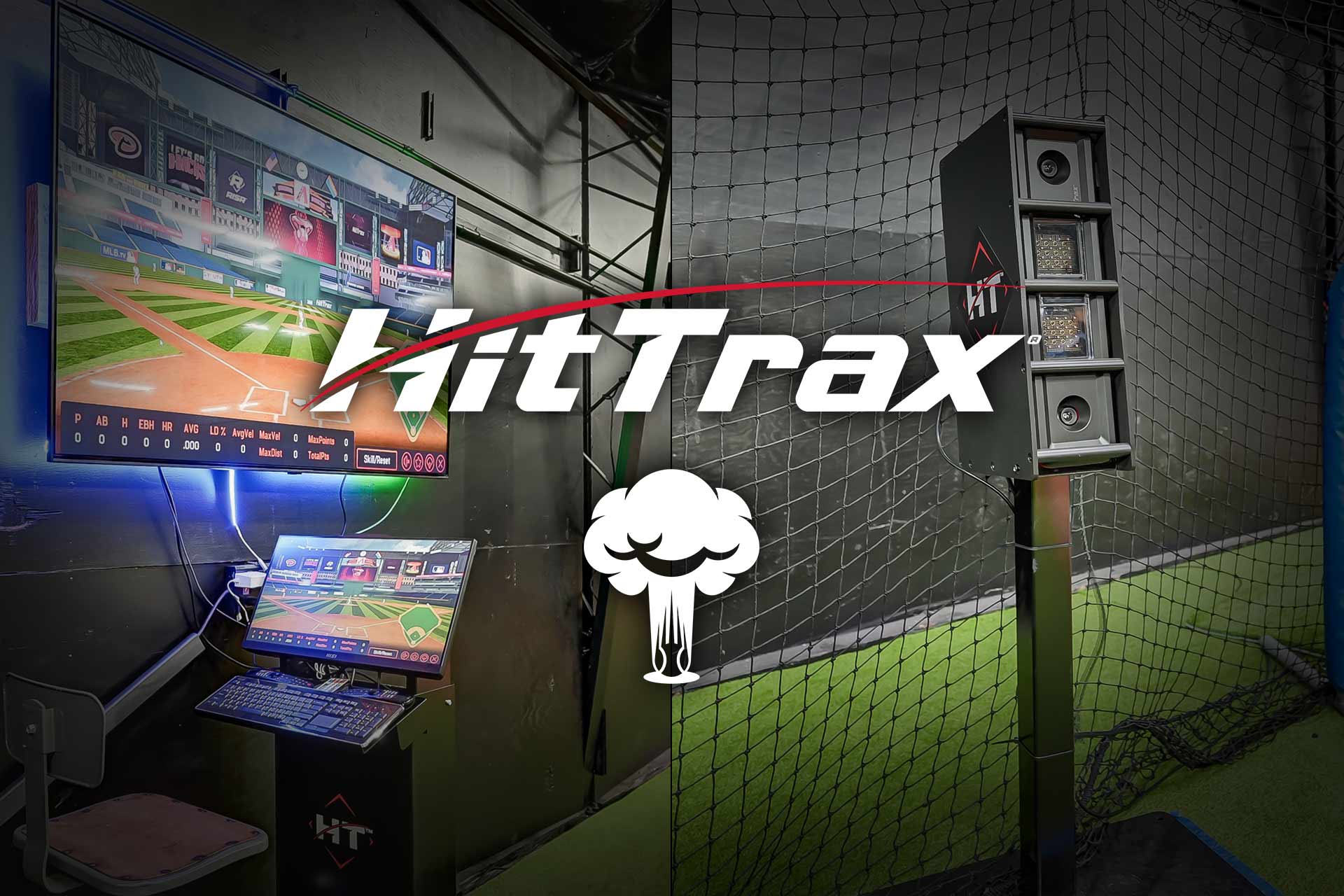 Nukes has Hit Trax in house which is an incredible technology that allows your team or player to play on actual big league or college fields at their skill level while receiving instant feedback on their bat speed, launch angle, hits, distance and everything else.