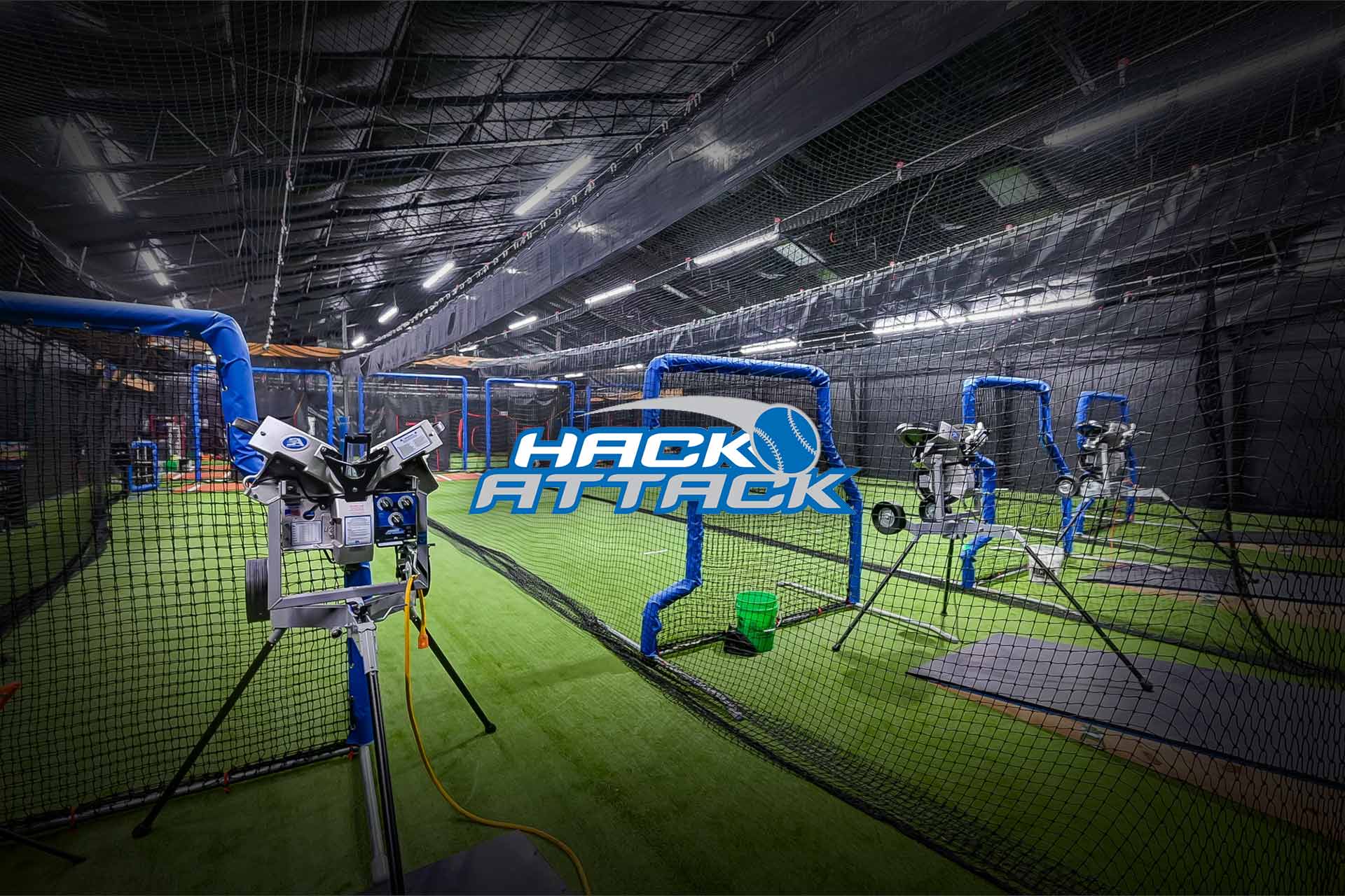 Nukes Warehouse provides state of the art Arena Netting with the full size Hack Attack pitching machines that have the ability to throw softball or baseball to youth or big leagures. Curveball, Slider, Change up, Knuckle Ball, Fastball 40MPH, 100+MPH, no problem we got you covered.